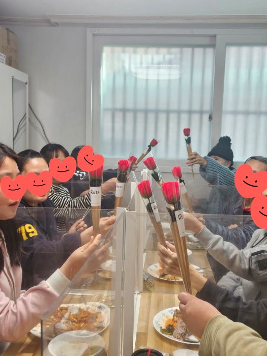 여성의 날 축하해요!! 김진미2025.03.08 21:07:40 조회356 오늘은 UN이 정한 '세계 여성의 날' 입니다. 여성의 날에는 세계적으로 빵과 장미를 나누는 행사를 한다고 하네요. 디딤센터 식구들도 예쁜 비누장미와 작은 간식들을 나누며 자축했습니다. 여성의 날이면 힘든 여성들을 더 생각해 주시고 마음을 모아주시는 많은 여성분들과 함께 여성들이 더 힘낼 수 있는 세상을 기대하며 함께 축하해요!!!